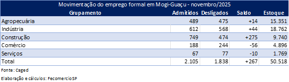 15 de janeiro de 2026Movimentação do emprego celetista em Mogi-Guaçu até Nov/2025